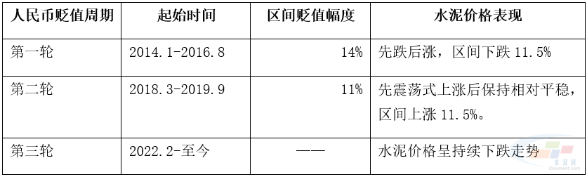 表1:人民幣貶值與水泥價格